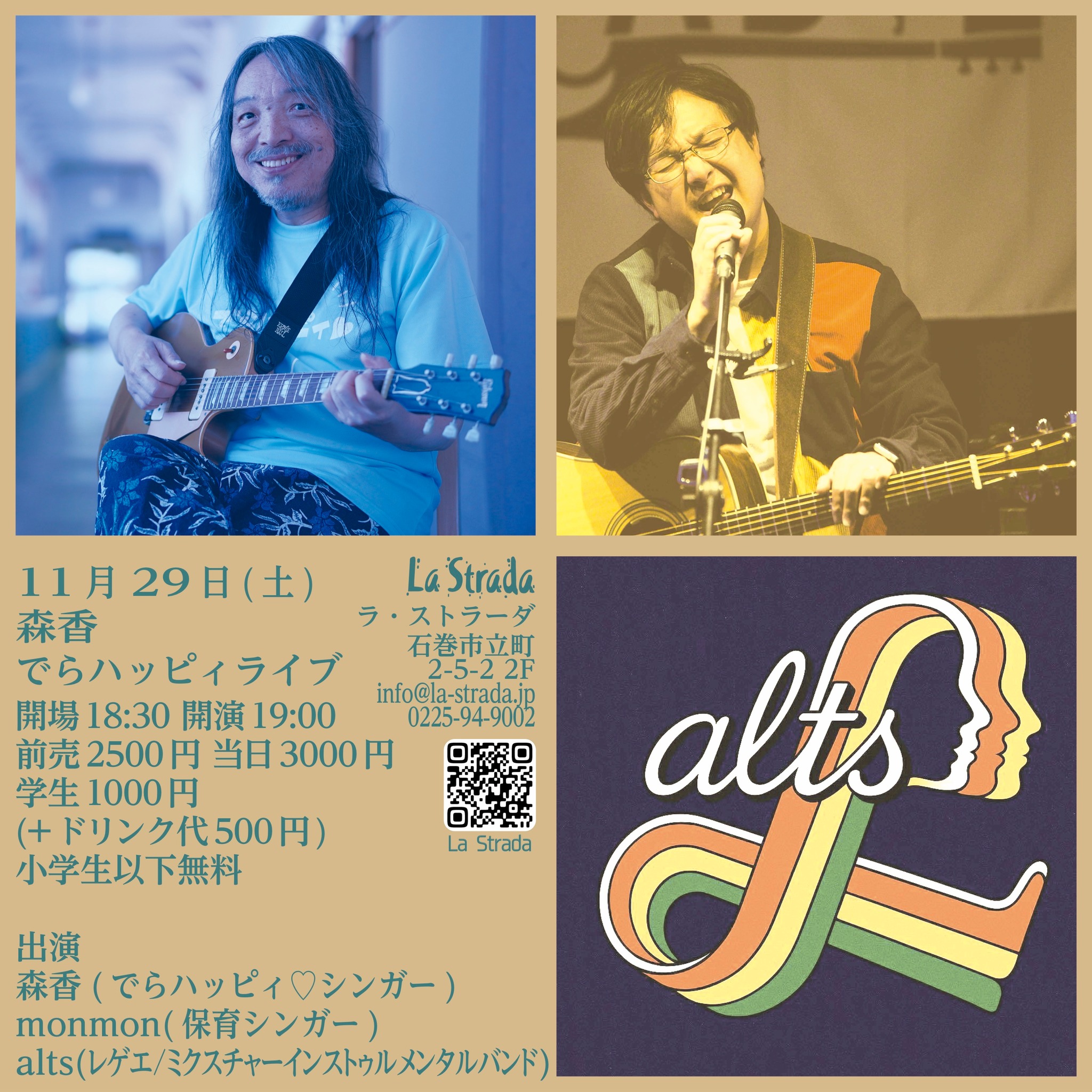 | > 2025.8.3 | 2025年9月の SCHEDULE を更新しました。 2025/9/5(金) AZUMI 秋のズンドコツアー2025 2025/9/19(金) 安達久美 LIVE IN ISHINOMAKI 2025/9/21(日) ラ・ストラーダのスーマー |