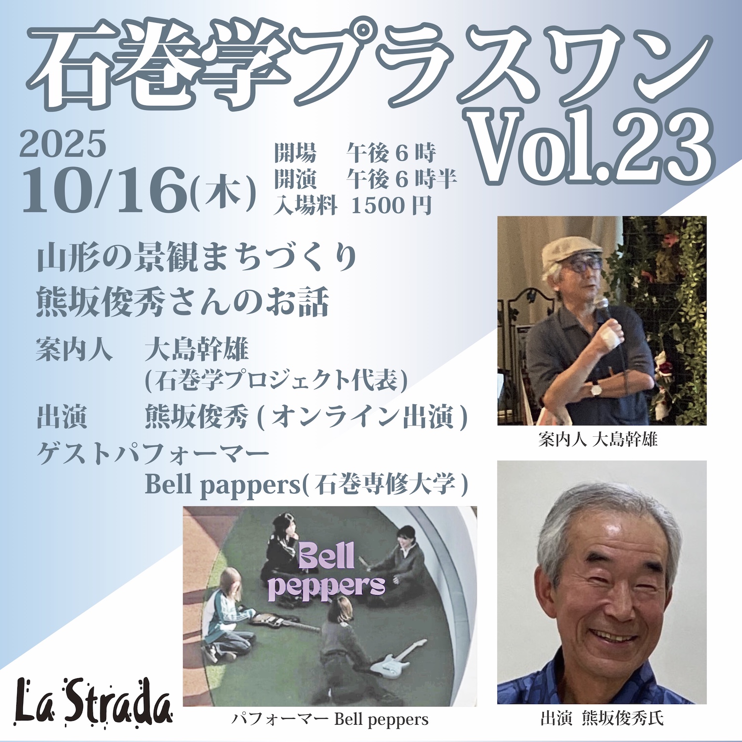 > 2025.2.26 | 2025年3月の SCHEDULE を更新しました。 2025/3/27(木) 石巻学プラスワン Vol.19「石巻に根付く文化の変遷 芸術・歴史編」 |